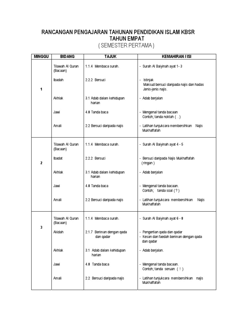 Rpt Pendidikan Islam Tahun 4