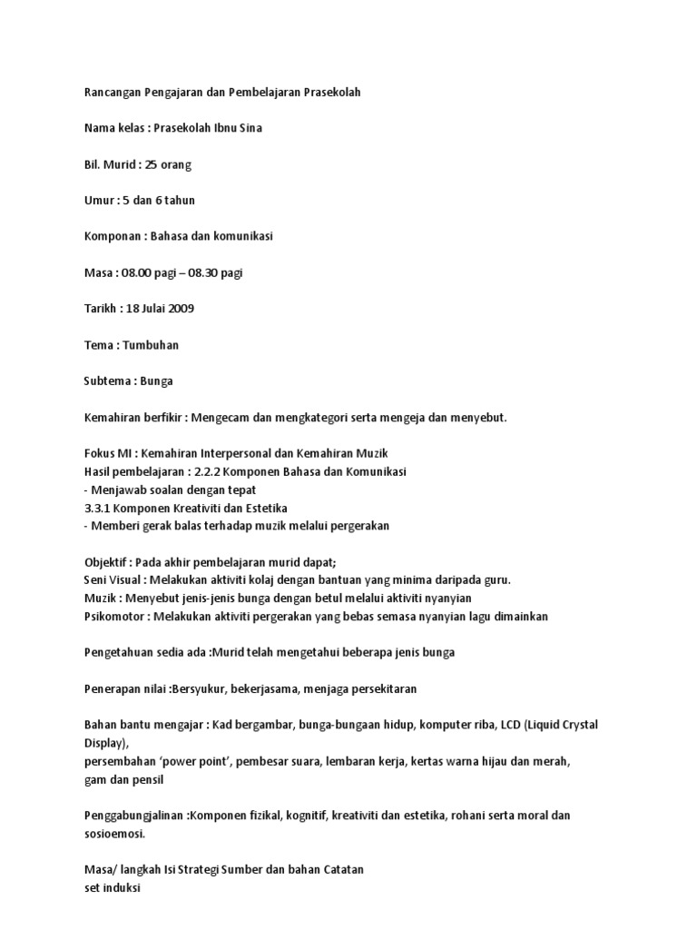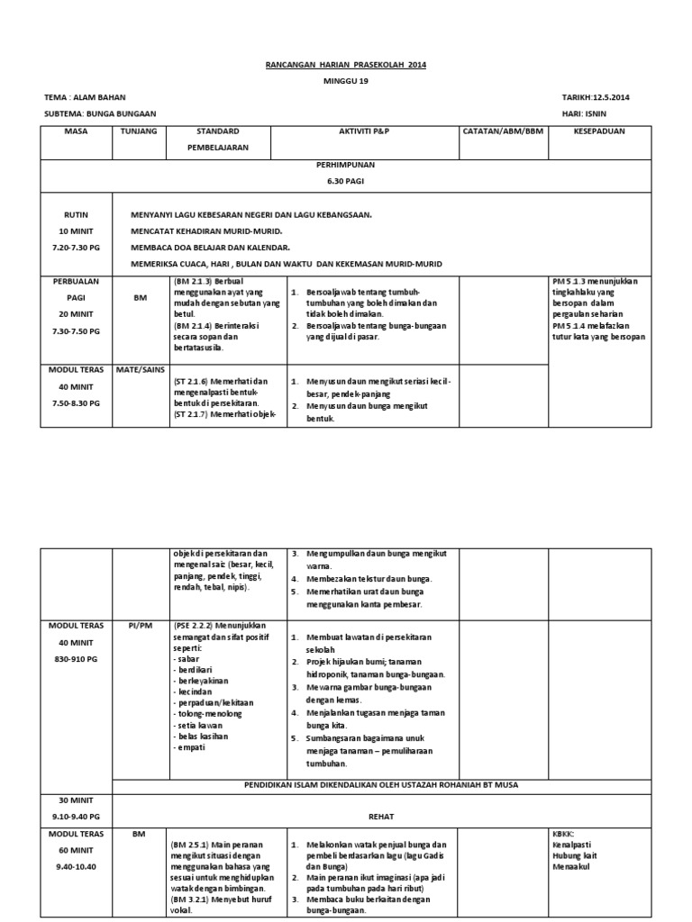 Rancangan Pengajaran Slot Tema Bunga Uutl Ks Mercana Ru