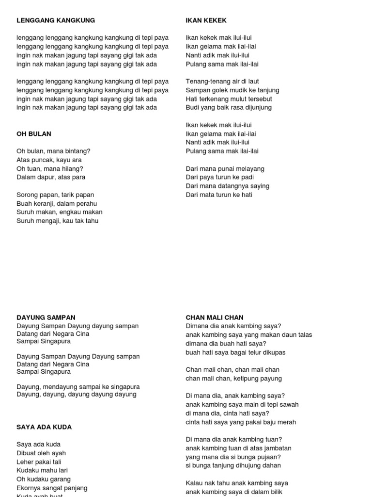 Lirik Lagu Can Mali Can Docx Document