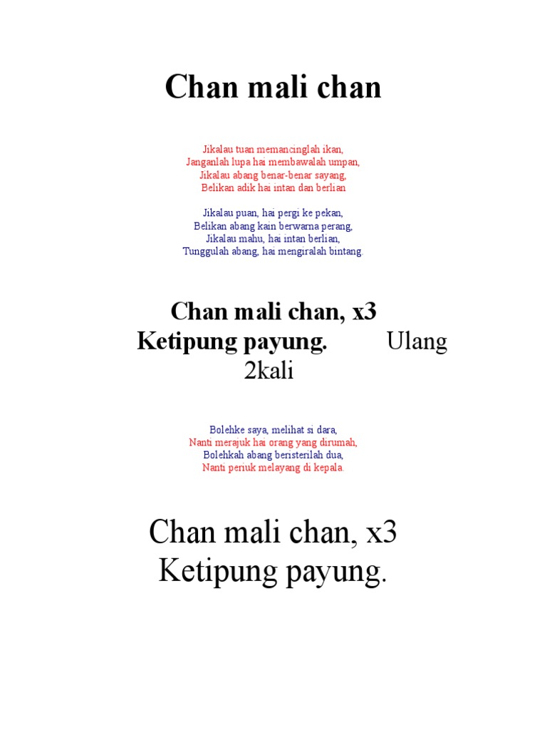 Lirik Lagu Chan Mali Chan
