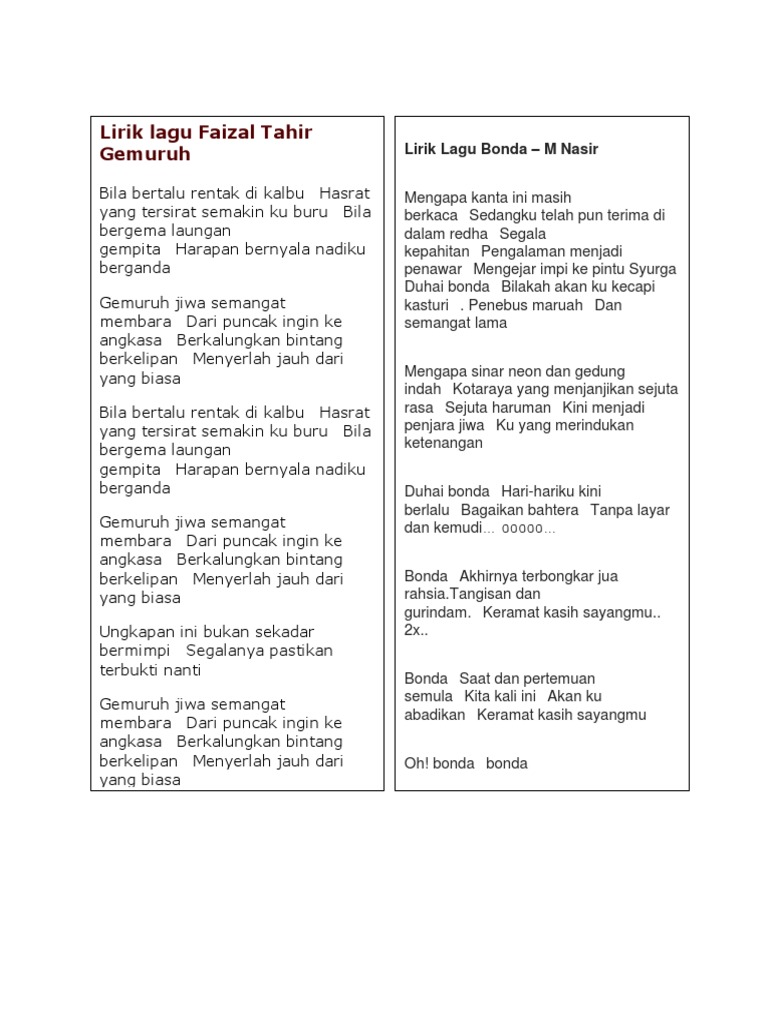 Faizal Tahir Choir Docx Faizal Tahir Gemuruh Bila Bertalu Rentak Di Kalbu Hasrat Yang Tersirat Semakin Ku Buru Bila Bergema Laungan Gempita Harapan Course Hero