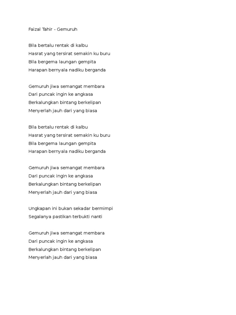 Faizal Tahir Choir Docx Faizal Tahir Gemuruh Bila Bertalu Rentak Di Kalbu Hasrat Yang Tersirat Semakin Ku Buru Bila Bergema Laungan Gempita Harapan Course Hero