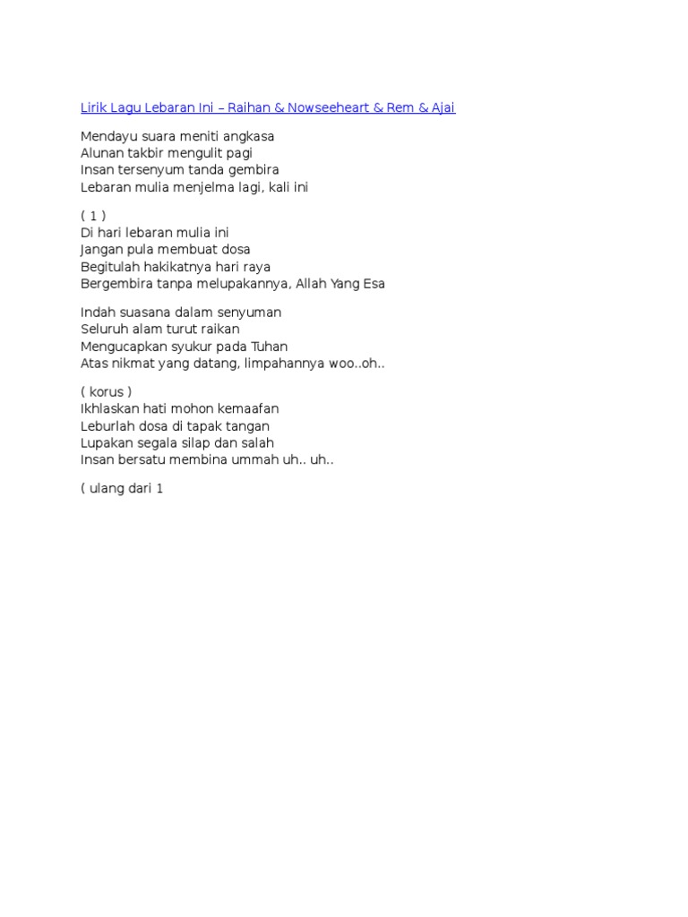 Ku Pohon Restu Ayah Bonda Lirik Lagu Raya Docx