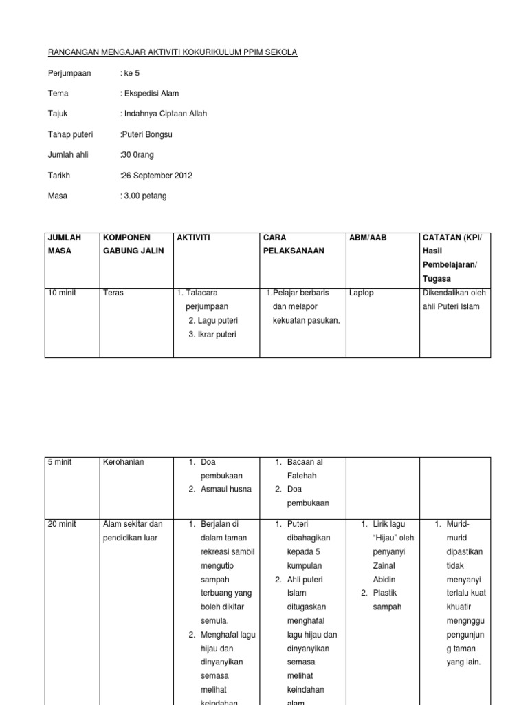 Hamidah Rancangan Mengajar Aktiviti Kokurikulum Ppim Sekola
