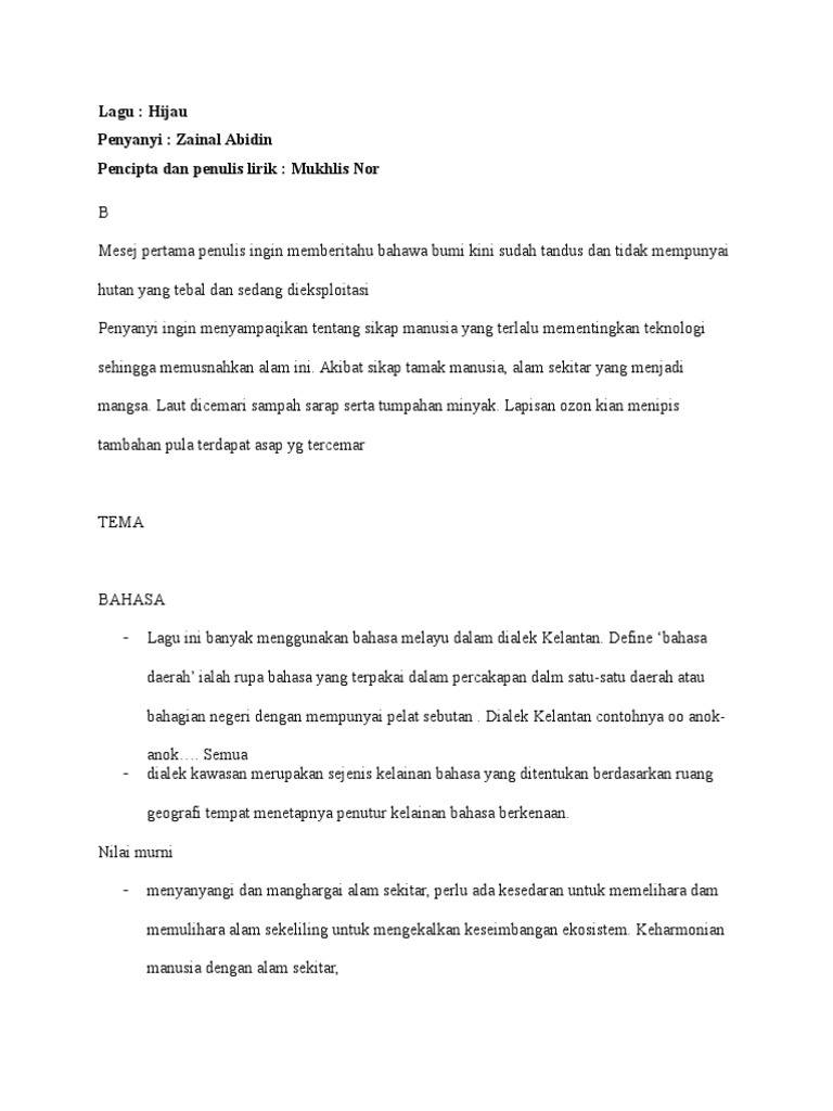 Lirik Lagu Hijau Docx Document