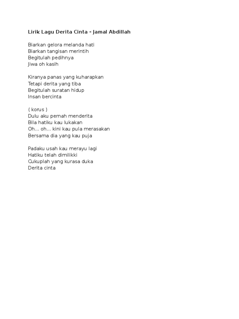Lirik Lagu Derita Cinta Docx Docx Document