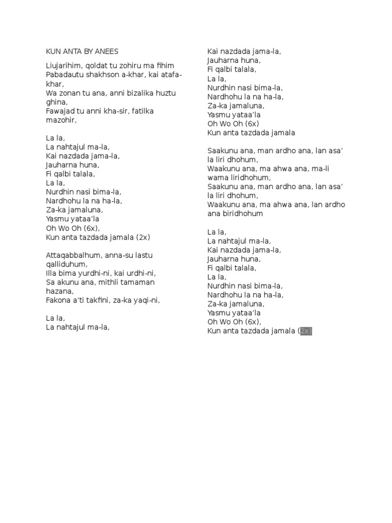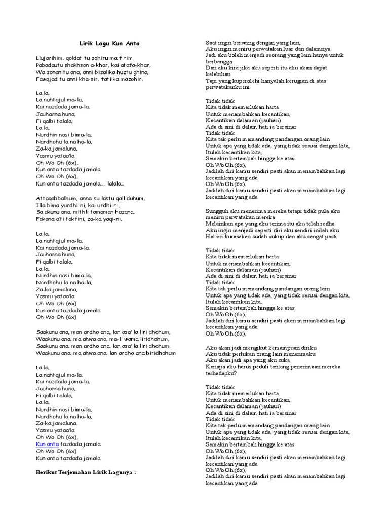 Lirik Lagu Kun Anta Documents