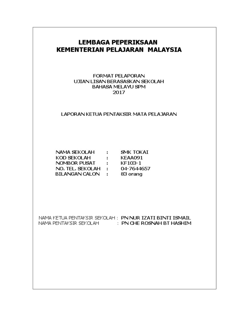 Borang Markah Induk Kpkw Ulbs Bahasa Melayu Spm 2010