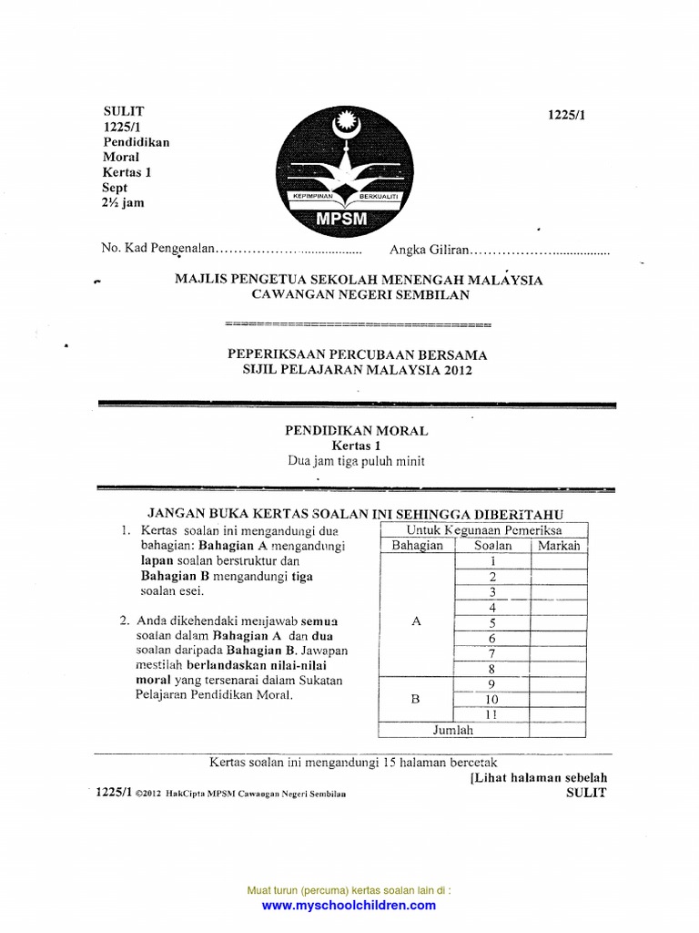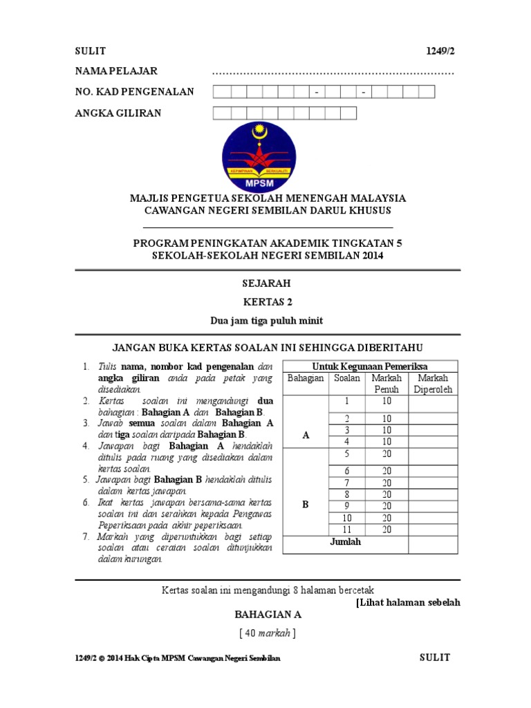 Skema Jawapan Kertas 1 Dan Kertas 2 Negeri Sembilan Bm Spm Percubaan Pdf