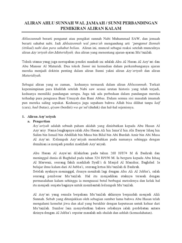Aliran Ahlu Sunnah Wal Jamaah Docx