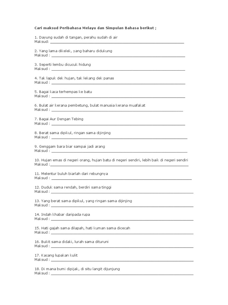 Koleksi Peribahasa Melayu Simpulan Bahasa Dan Maksud