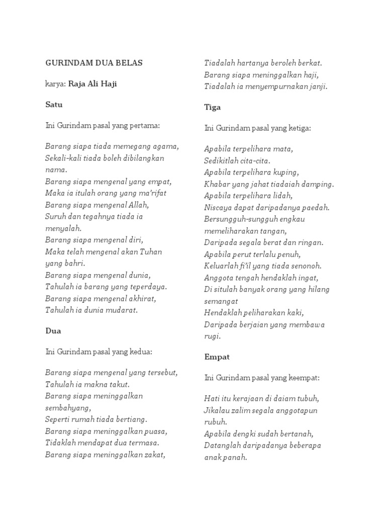 Doc Makna Gurindam Dua Belas Karya Raja Ali Haji Phe Cass Academia Edu