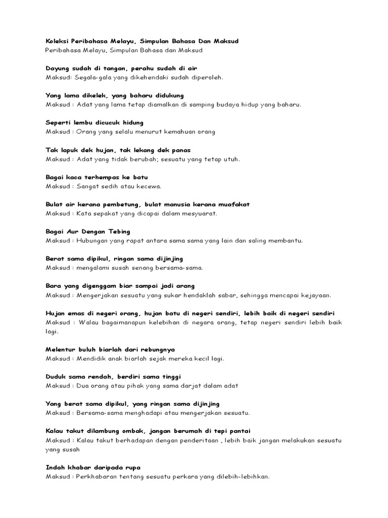 Koleksi Peribahasa Melayu Simpulan Bahasa Dan Maksud