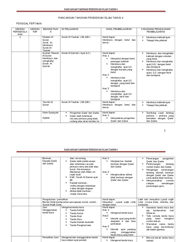 Rpt Pendidikan Islam Tahun 4