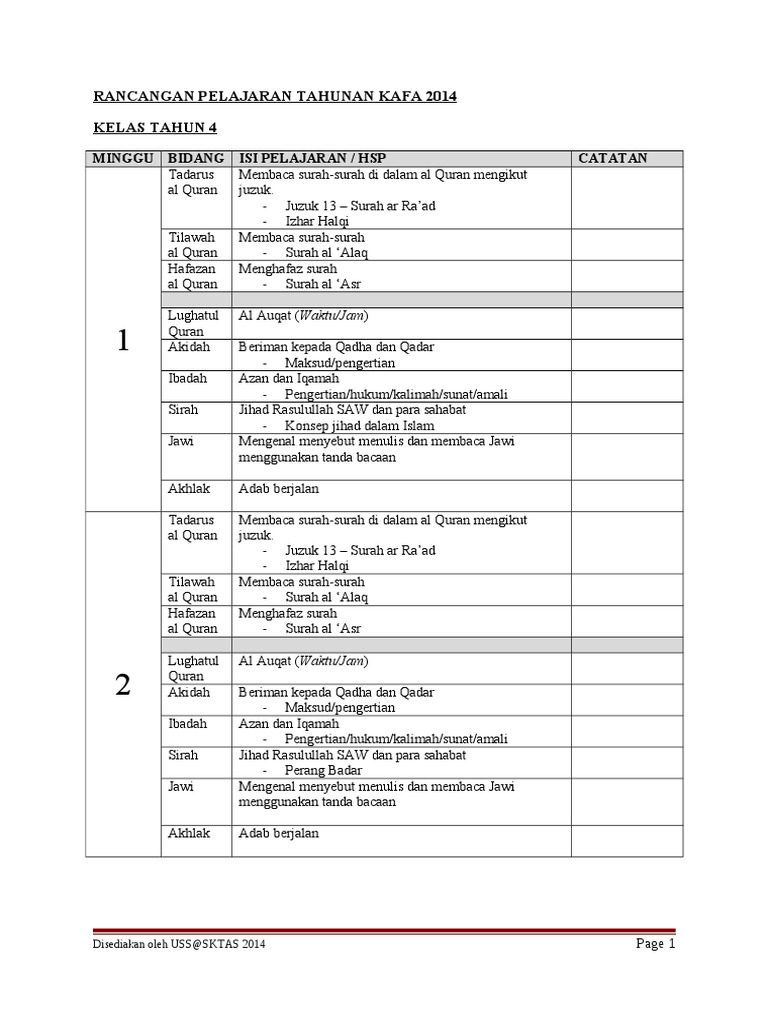 Rancangan Pelajaran Tahunan Kafa 2014 Tahun4