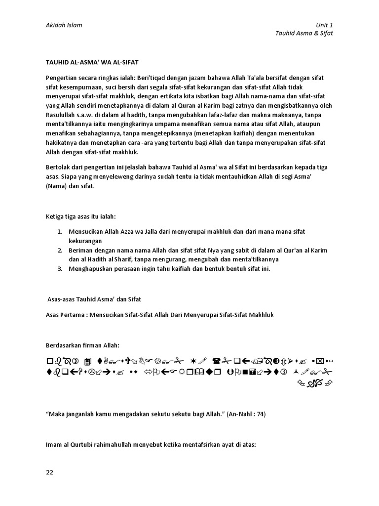 ملة محمدmillah Muhammad Makna Tauhid Asma Wa Sifat