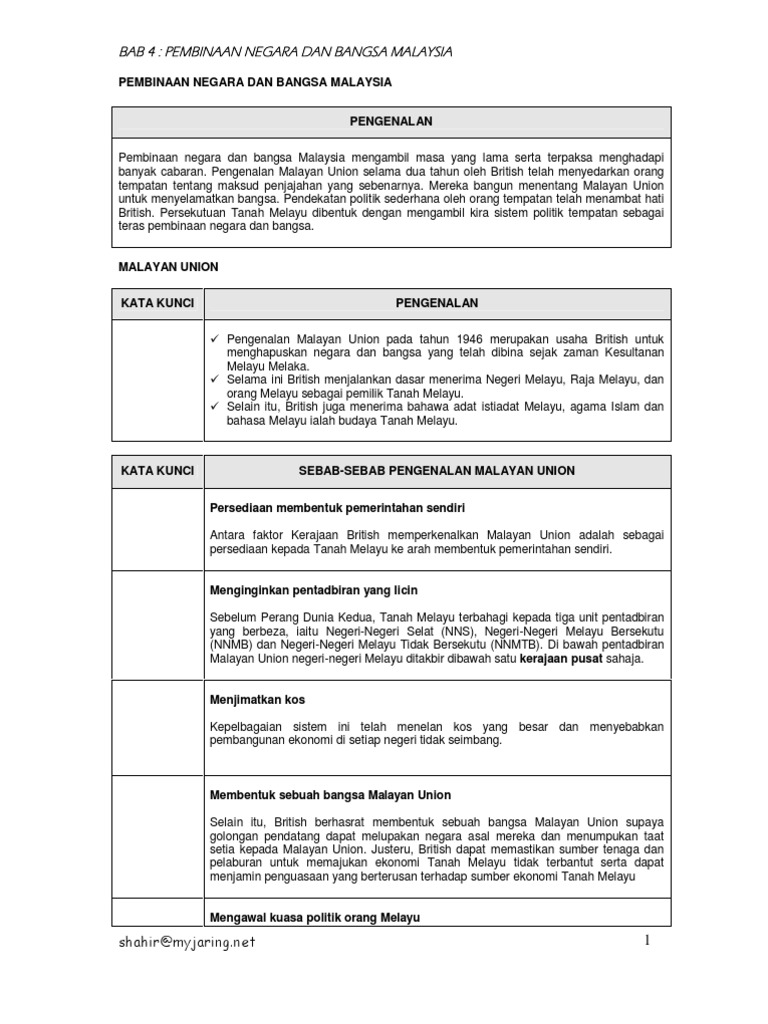 Nota Sejarah Pt3 Bab 2 Malayan Union Dan Persekutuan Tanah Melayu