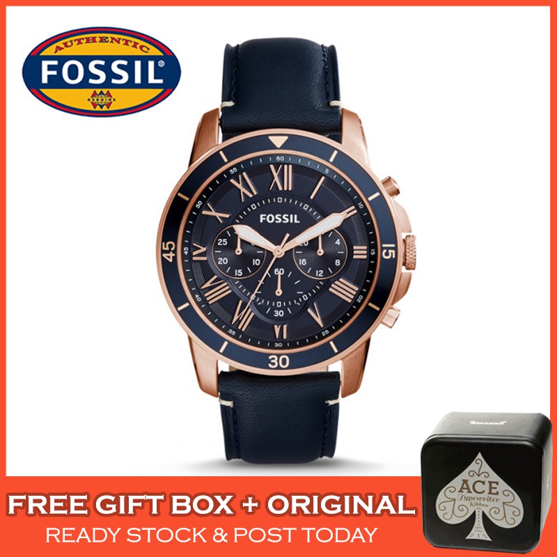 Original Fossil Fs5237 Men S Grant Sport Chronograph Navy Blue Leather Men Watch Jam Tangan Lelaki Shopee Malaysia