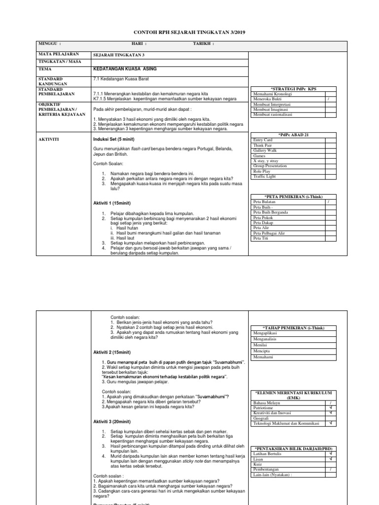 7 1 Kedatangan Kuasa Barat Rancangan Pengajaran Harian Sejarah Mata Pelajaran Dan Kelas Masa Tema Standard Kandungan