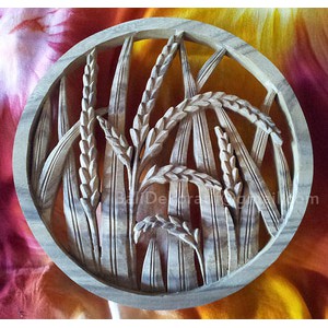 Ukiran Kayu Relief Motif Bunga Padi Diameter 29cm Hiasan Dinding Shopee Indonesia