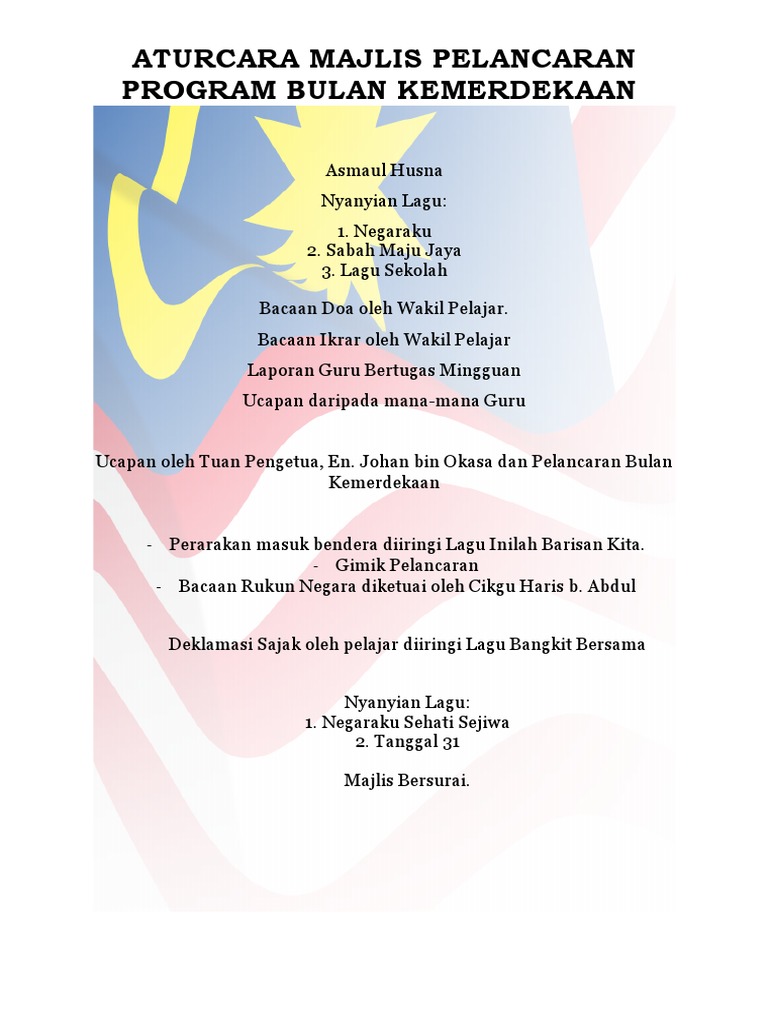 Teks Pengacara Majlis Perasmian Sambutan Bulan Kemerdekaan