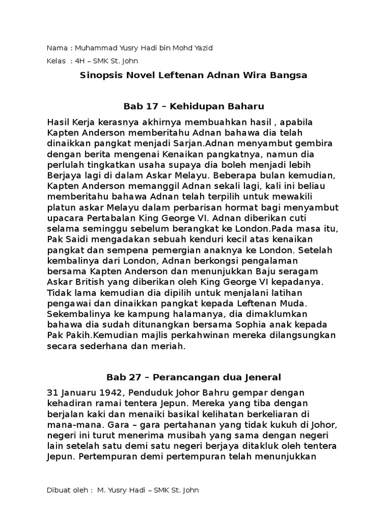 Sinopsis Novel Leftenan Adnan Bab 10 By Hani Kartini