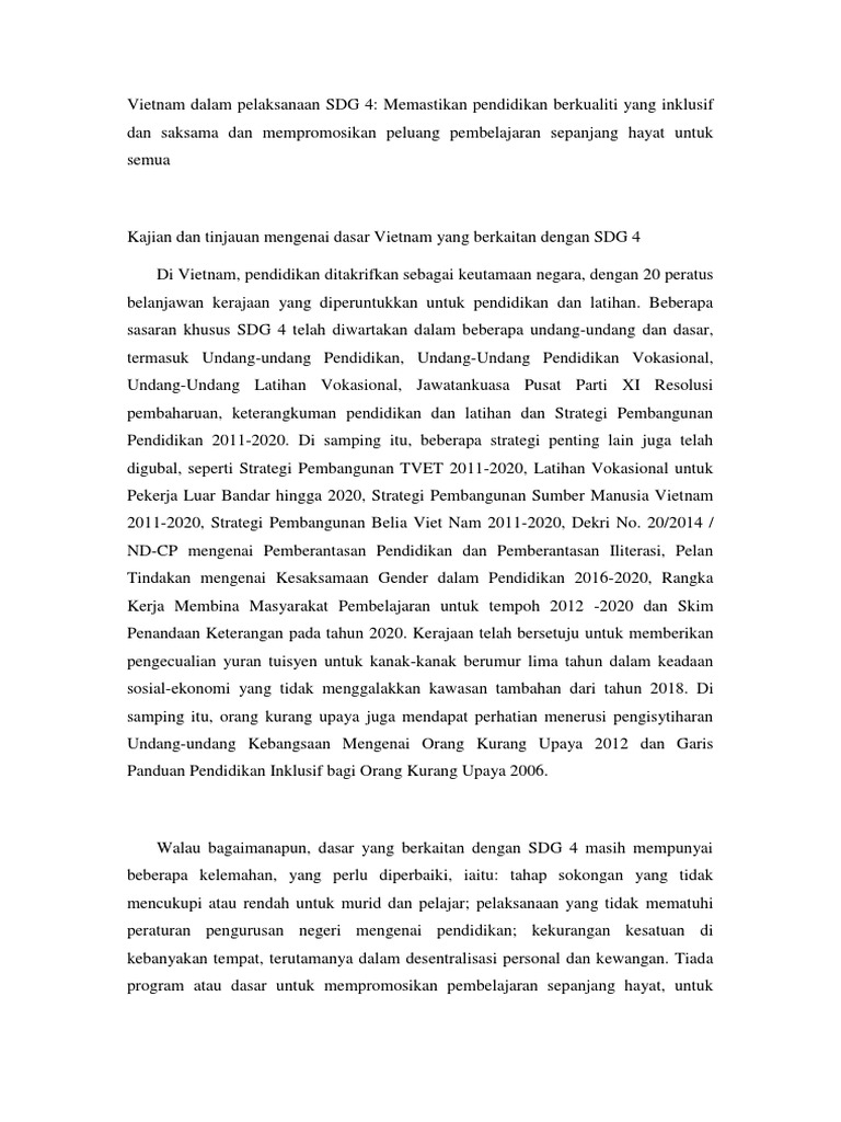 Vietnam Dalam Pelaksanaan Sdg 4