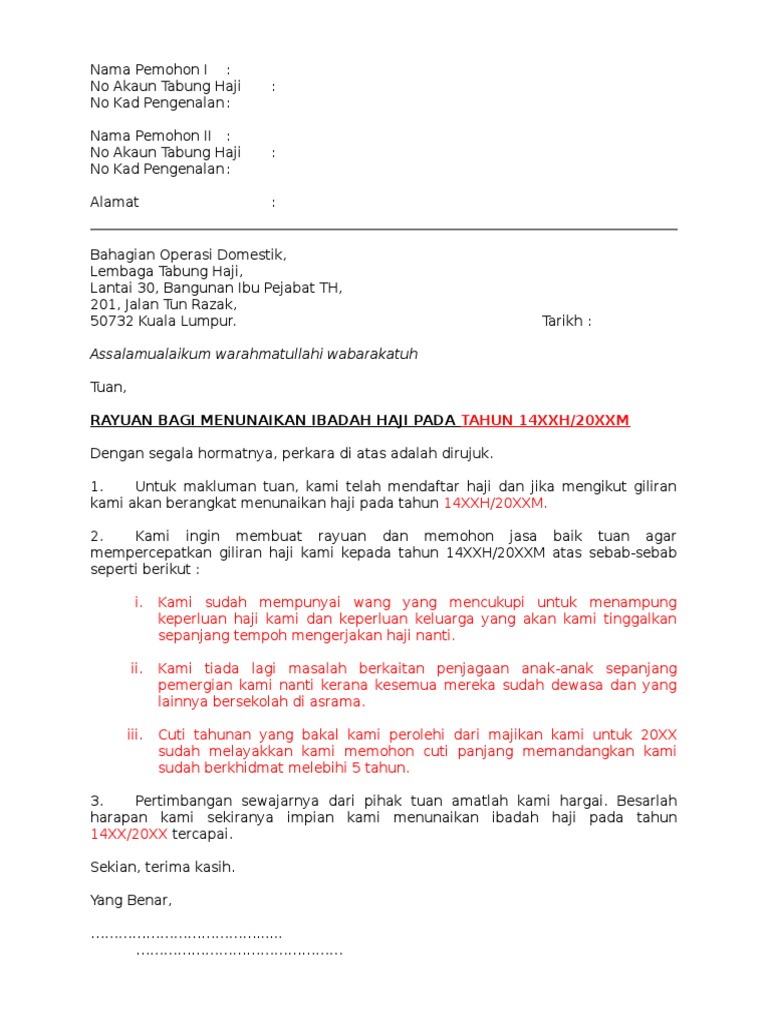 Contoh Surat Rayuan Haji 2019 J Kosong W