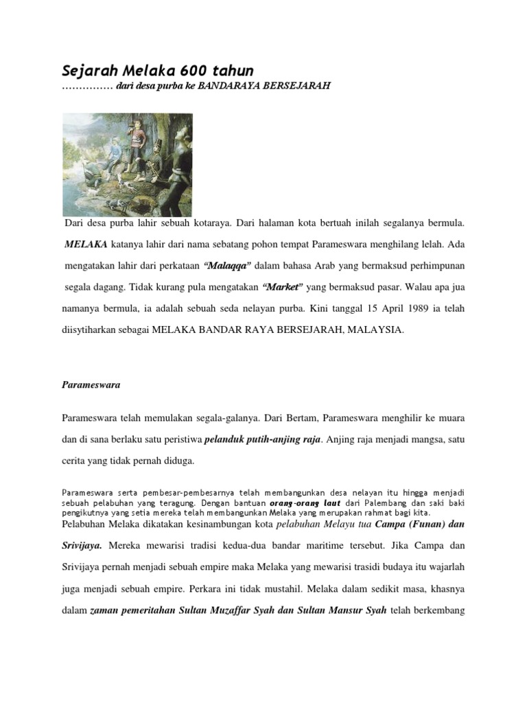 Sejarah Melaka 600 Tahun Dari Desa Purba Ke Bandaraya Bersejarah