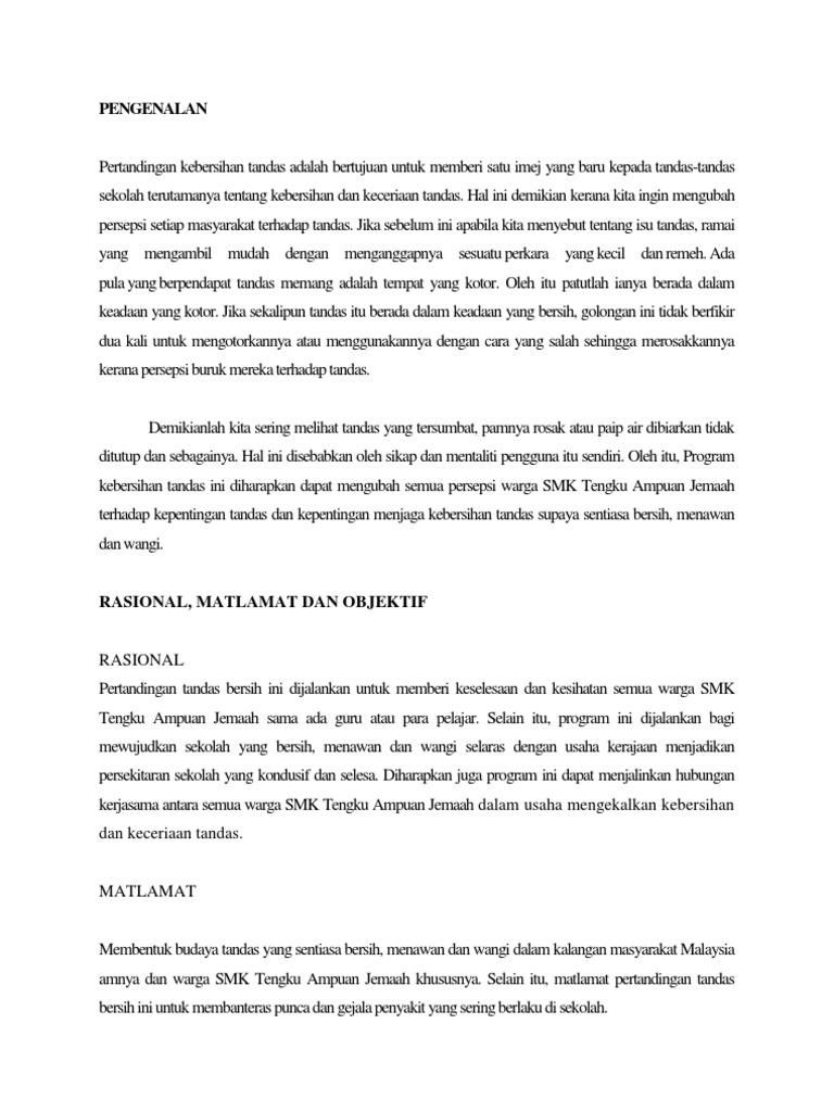 Penarafan Kebersihan Tandas Sekolah Pdf