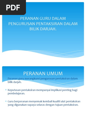 Peranan Guru Dalam Pengurusan Pentaksiran Dalam Bilik Darjah