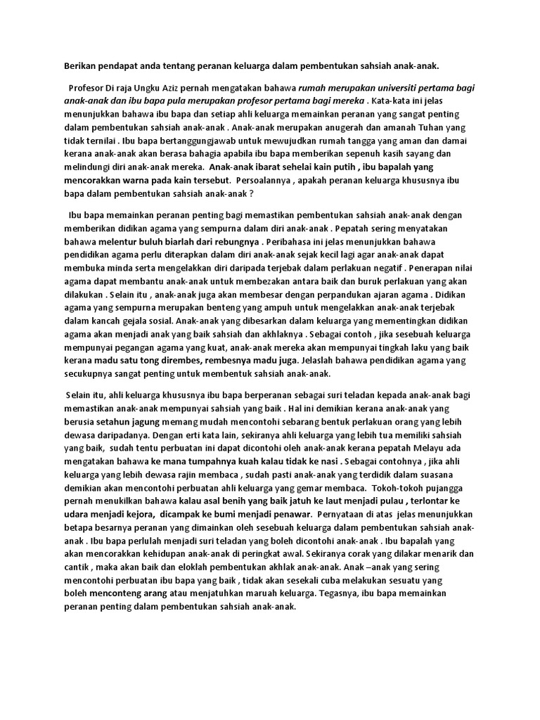 Berikan Pendapat Anda Tentang Peranan Keluarga Dalam Pembentukan Sahsiah Anak Docx