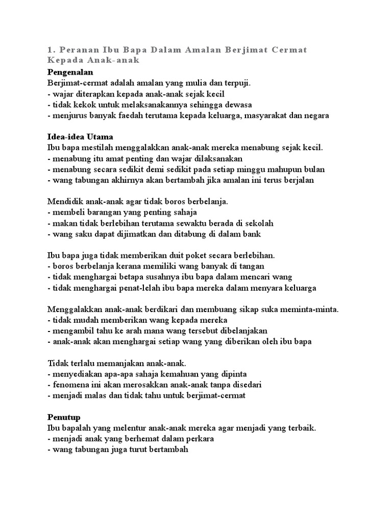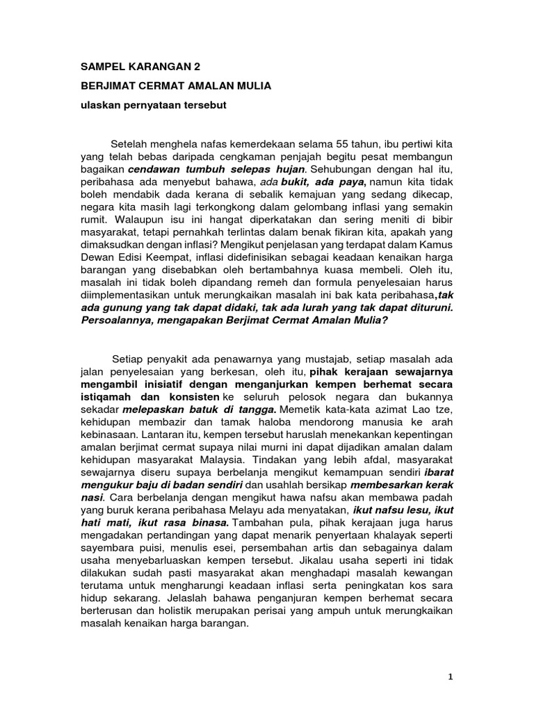 Sampel Karangan 2 Berjimat Cermat Amalan Mulia