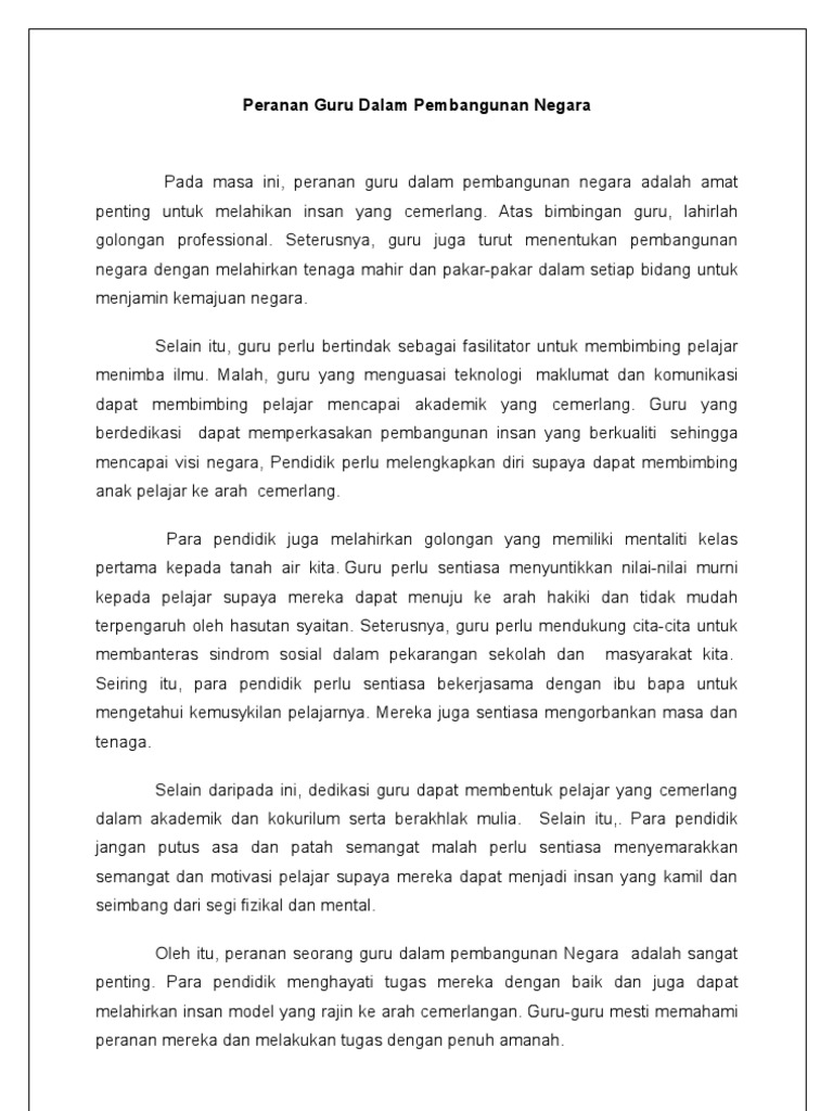 Peranan Guru Dalam Pembangunan Negara