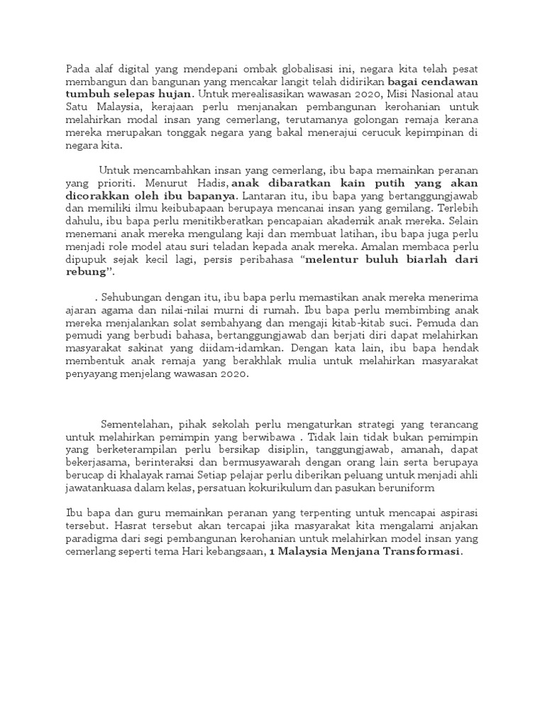 Remaja Cemerlang Contoh Karangan Pdf Document