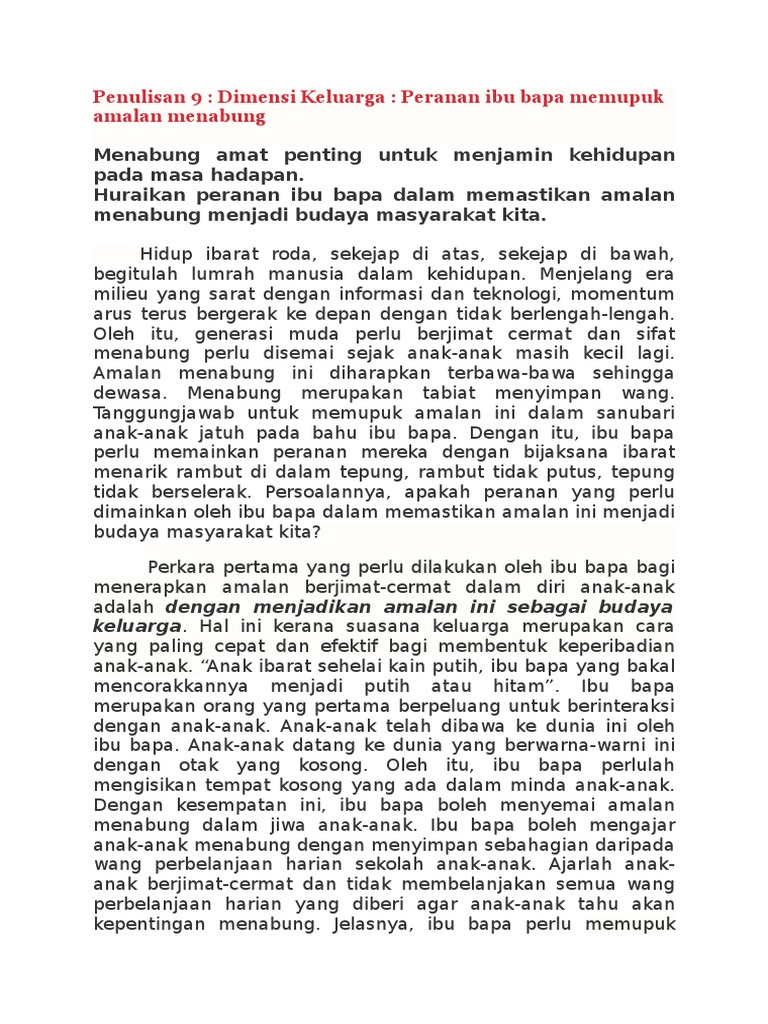 Contoh Karangan Spm Amalan Berjimat Cermat
