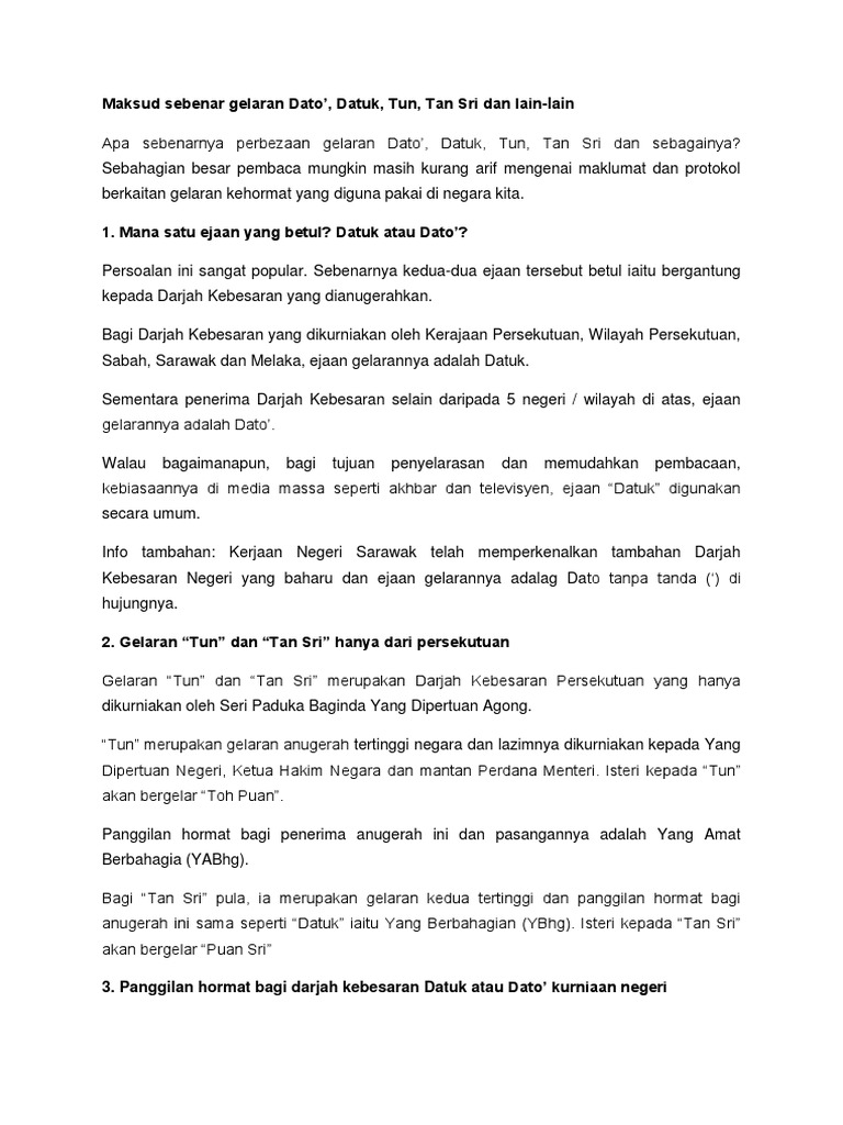 Maksud Sebenar Gelaran Dato Datuk Tun Tan Sri Dan Lain Lain Page 3 Share Jom