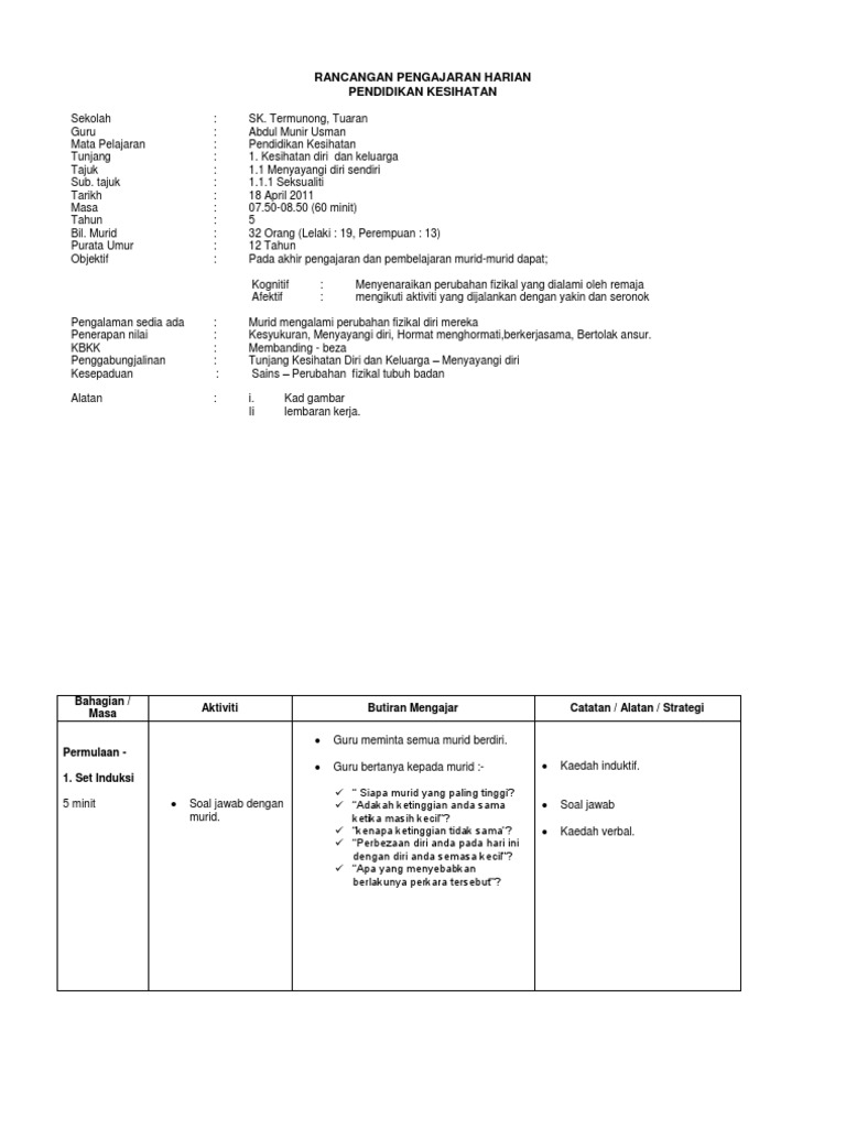 Rph Thn 6 Perubahan Fizikal Remaja