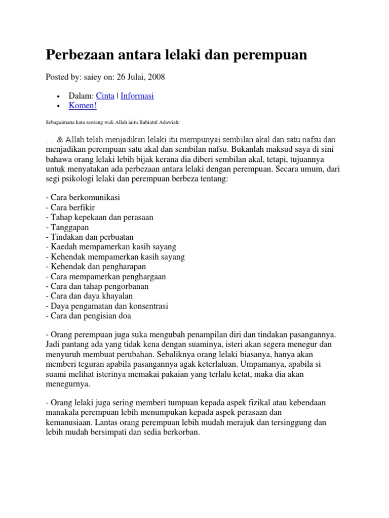 Ww Beza Lelaki Dan Perempuan