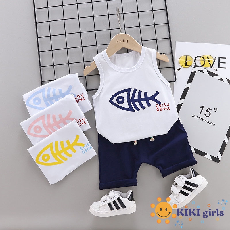 Kikigirls Pakaian Kanak Kanak Lelaki Dan Perempuan Suit Tanpa Lengan Baju Ikan Kartun 2pcs Qqq0009 Shopee Brasil