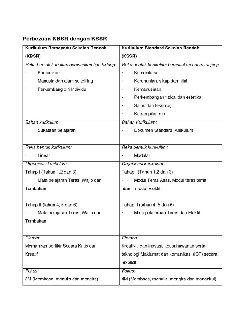 Doc Perbezaan Kbsr Dengan Kssr Jupirin Anakung Academia Edu