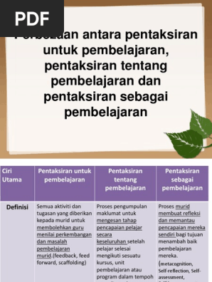 Perbezaan Antara Pentaksiran Untuk Pembelajaran Pentaksiran Tentang