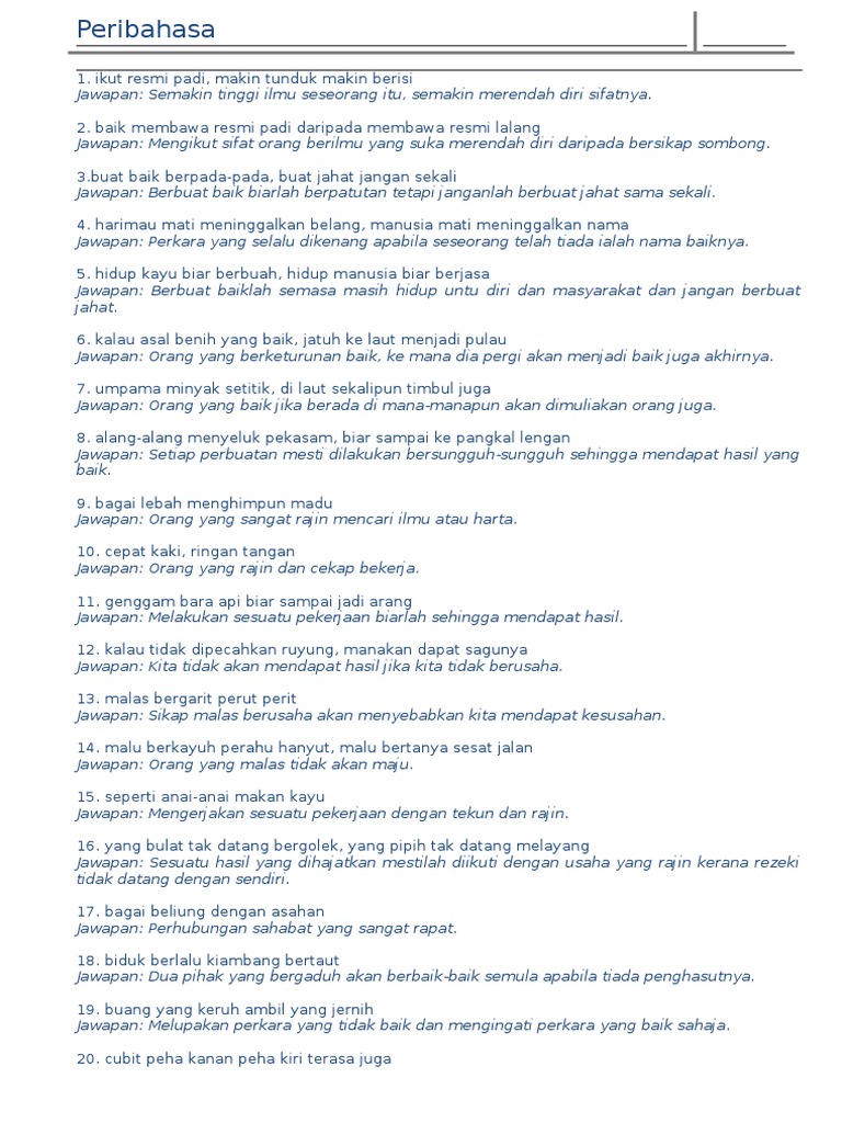 Tingkatan 2 Peribahasa Menjadi Pulau Orang Yang Berketurunan Baik Ke Mana Rnana Dia Pergi Akan Baik Pdf Document