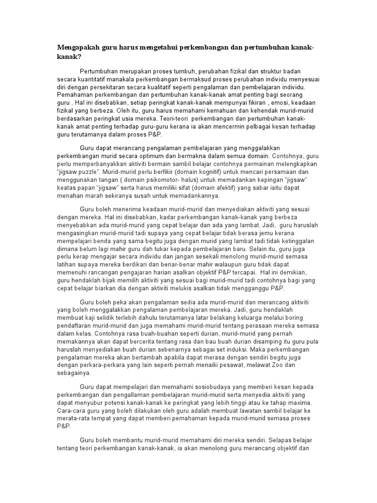 Mengapakah Guru Harus Mengetahui Perkembangan Dan Pertumbuhan Kanak
