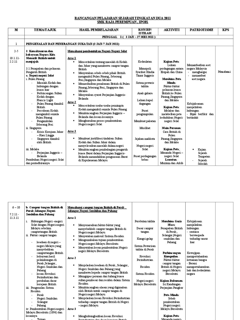 Rancangan Pelajaran Sejarah Tingkatan Dua 2011