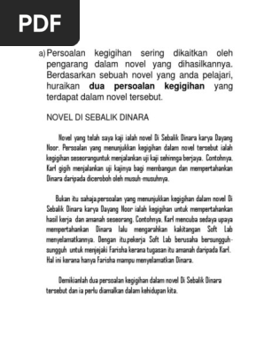 Contoh Jawapan Persoalan Novel Di Sebalik Dinara Lamaran R