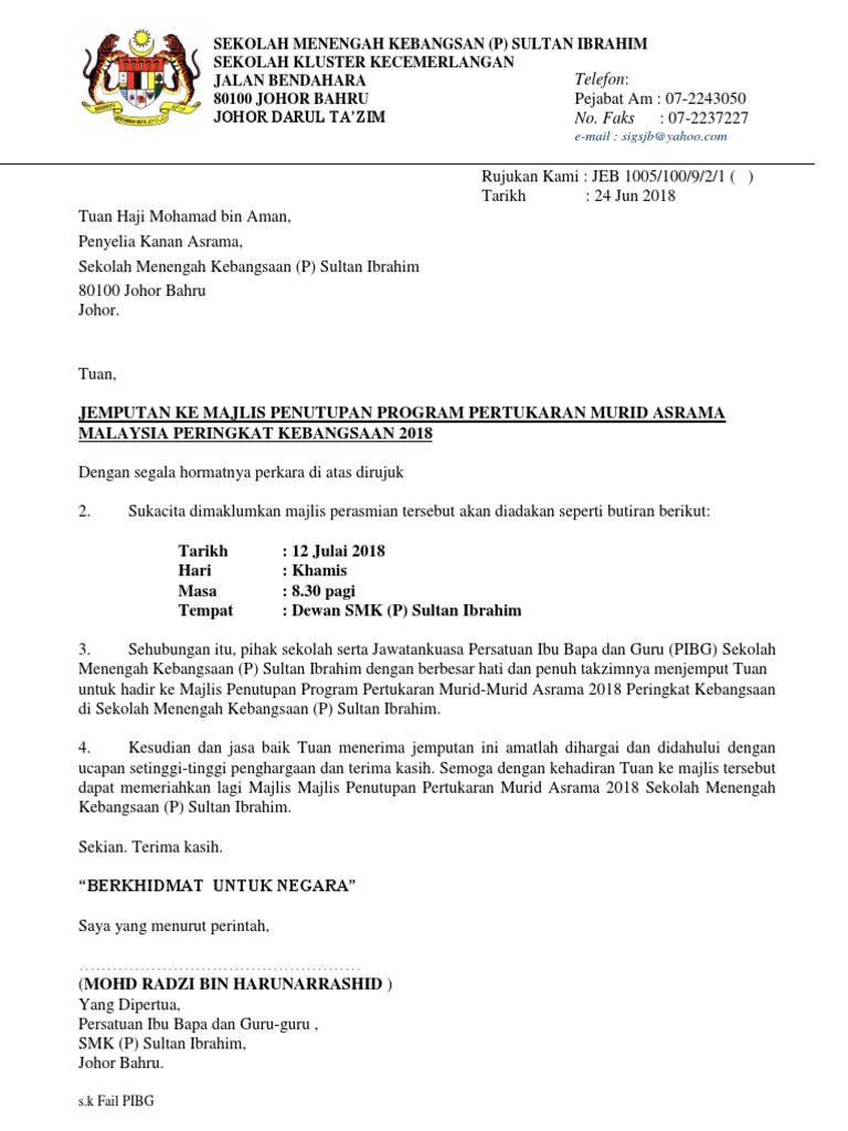 Contoh Surat Rasmi Rayuan Tukar Sekolah Surasmi G