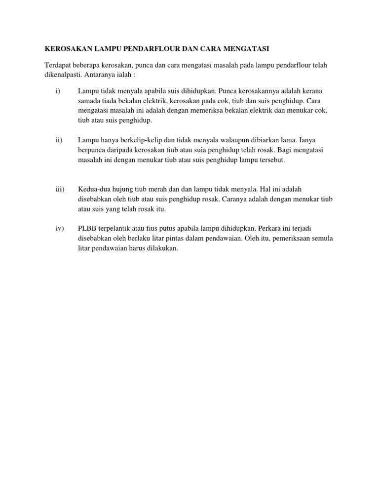 Kerosakan Lampu Pendarflour Dan Cara Mengatasi