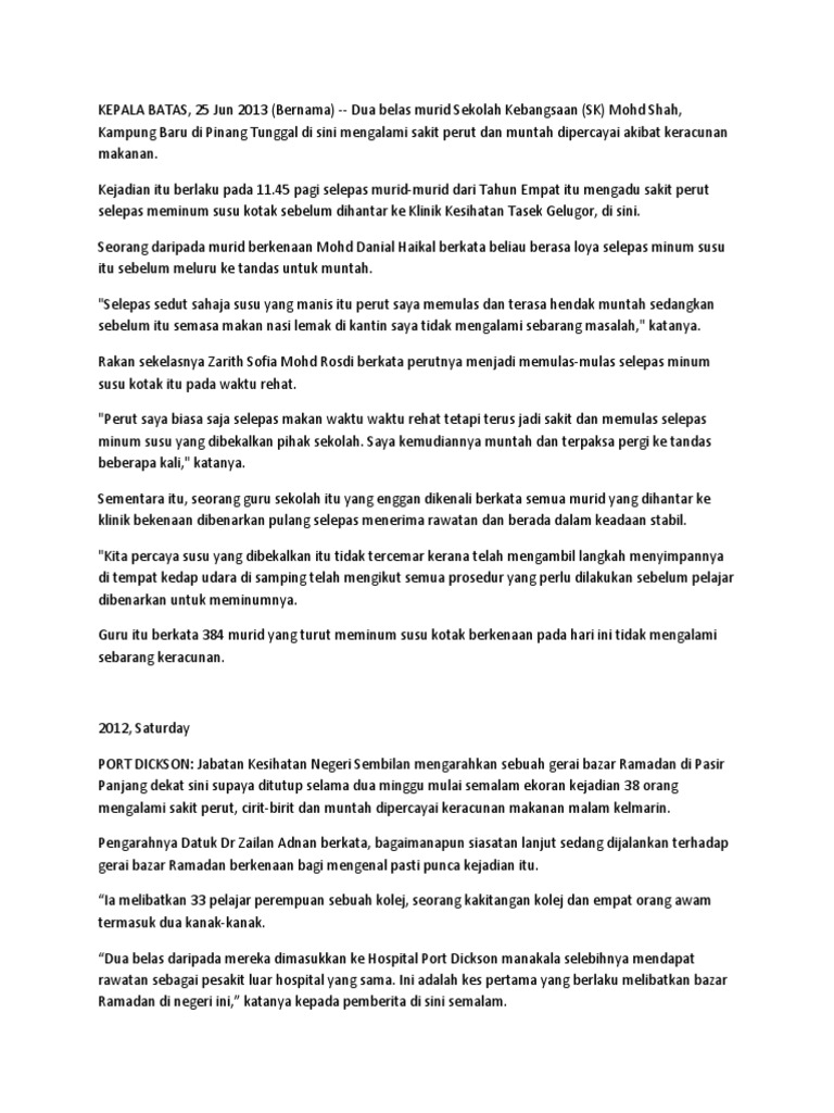 Menyediakan Laporan Tentang Kes Keracunan Makanan Yang Berlaku Di Sekolah Itu Baru Baru Ini Tulis Laporan Tersebut Selengkapnya