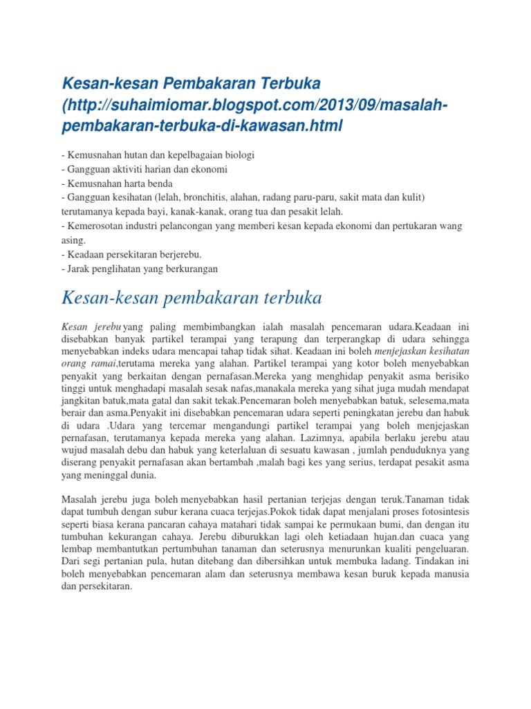 Punca Punca Berlakunya Jerebu Dan Kesan Kesannya